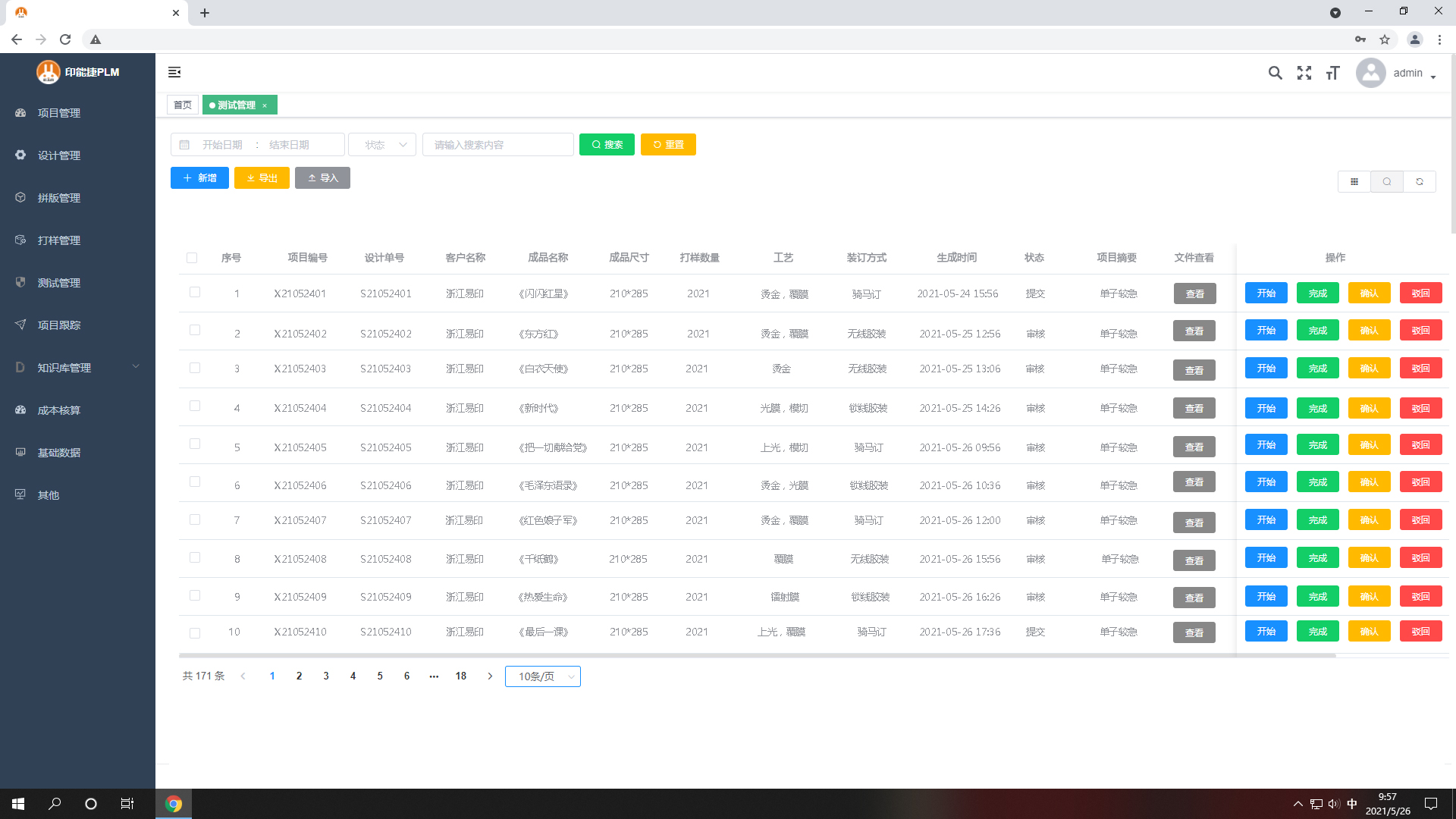 2.數(shù)碼打樣開始,點(diǎn)‘開始’每個(gè)打樣任務(wù)