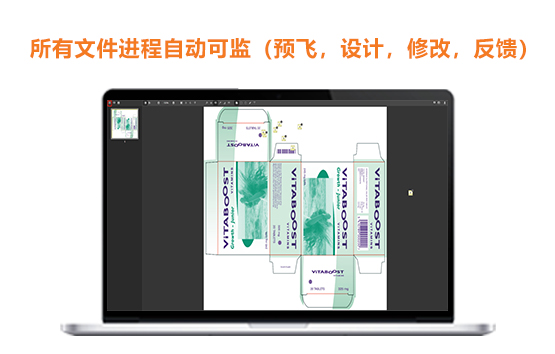 通過印前流程管理完成在線設(shè)計、在線預(yù)檢、在線拼版,在線確認(rèn),并結(jié)合PLM、MES系統(tǒng)實現(xiàn)文件自動與訂單產(chǎn)品一對一綁定,輸出預(yù)檢報告文件,大版文件,1-Bit-Tiff文件、大版刀模文件和PPF文件,自動流轉(zhuǎn)到對應(yīng)模塊,并可在線查看。